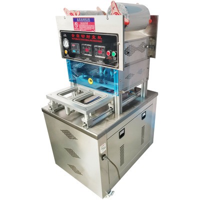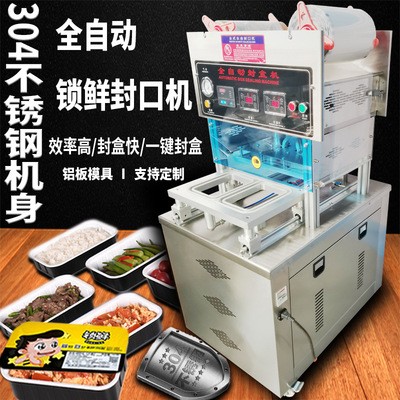 全自动立式气动封口机自动卷膜封盒机外卖打包盒一次性锁鲜盒封口