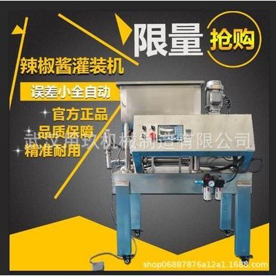 全自动酱料灌装机广泛应用于颗粒酱料的的生产与分装行业,可连续自动运行灌装。机器设计紧凑合理、外形简洁美观,灌装量调节方便。专业针对颗粒酱料,卧式搅拌,针对大颗粒酱料灌装过程容易出现油料分离现象,该豆瓣酱灌装机具有六个同步注脂灌装头,可均匀地被挤压灌装到容器里,外观美观大方,全不锈钢,易清洁,采用韩国光眼装置,、法国电器元件,可连续自动运行灌装,无瓶不灌装,配置防滴漏装置。可根据客户需求配置酱料瓶真空旋盖、自动贴标、喷码等配套设备。六头全自动酱料灌装机|豆瓣酱灌装机适用于膏体及大颗粒酱料,如麻辣酱、香辣酱、牛肉酱、豆辨酱、鲜辣酱、橄榄菜等酱料产品。