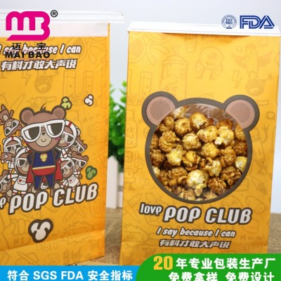 厂家爆米花袋方底纸袋子开窗淋膜覆膜牛皮纸袋加铁丝防油密封纸袋