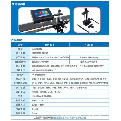 HM338喷印高度12.7,适用喷印口罩包装袋、口罩包装盒等日期方面的喷码;
