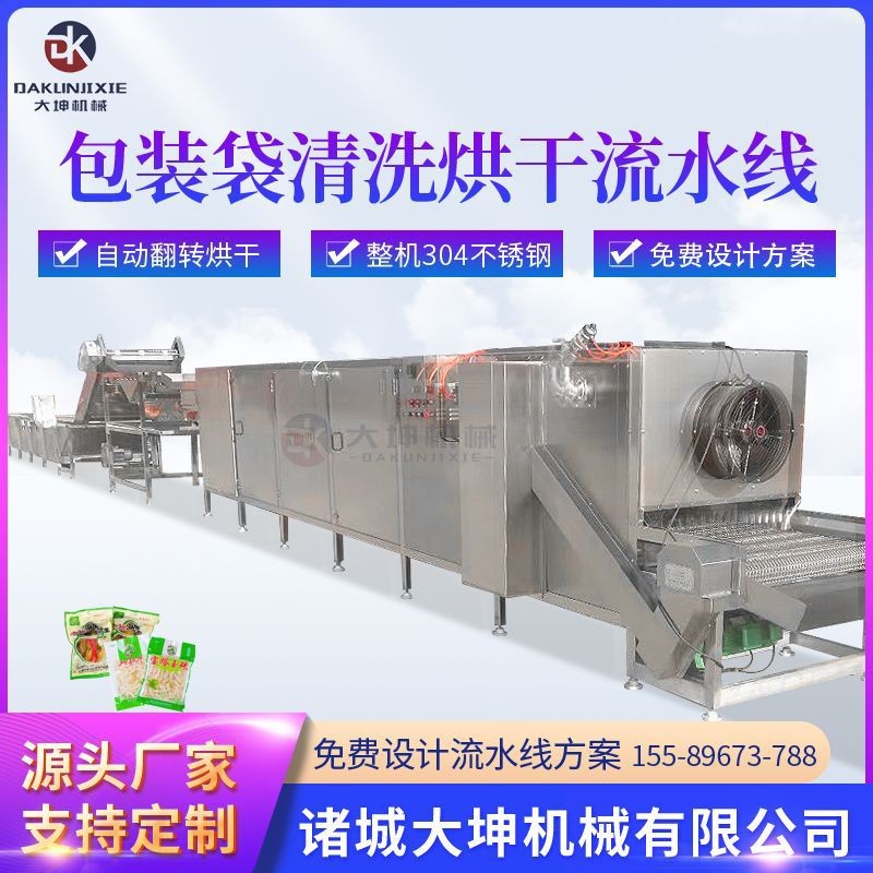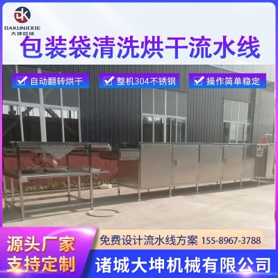 全自动软包装清洗烘干流水线 双槽洗袋机 包装袋去油污清洗设备