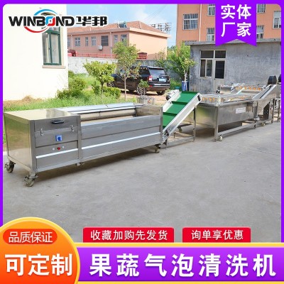 大型果蔬气泡清洗流水线采用汽泡清洗,适用于蔬菜、水果、水产品等颗粒状、叶状、根茎类产品清洗、浸泡。