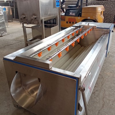 毛辊清洗机是我公司根据市场需求开发研制的产品,主要用于胡萝卜、马铃薯、红薯、苹果、梨、红果等根茎类果蔬和火腿肠等椭圆形类的清洗。本机清洁卫生,毛辊不易变形,分别配有软、硬毛刷,软毛清洗、硬毛去皮,均采用尼龙绳轧制而成,经久耐用,具有洗洁净高、节能、节水、设备稳定可靠等特点,是食品加工行业的理想设备。
