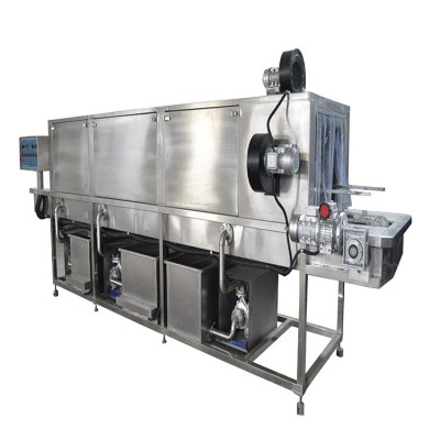 10.本机为叁段清洗第一段为热碱水、第二段为热洗洁精水、第三段为清水冲洗,叁段清洗设计。