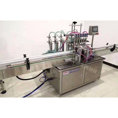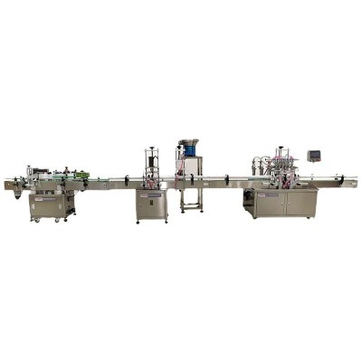 2、灌装机、理盖、拧盖、打码、贴标一站式完成。