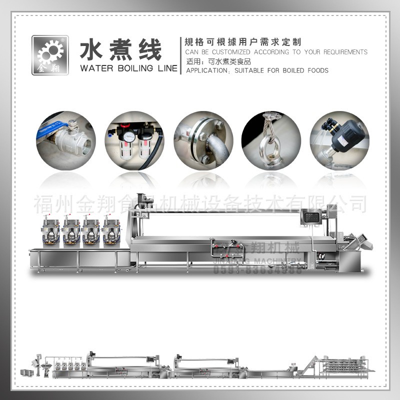 我司生产有的水煮线有综合型和单一型,适合各种类型水产和肉制品加工。自动水煮线可通过设定达到自动控温、自动控制水煮时间、自动全线循环水、滤清功能、抽汽配置、自动槽内喷水清洗,还可进行节水设计、保温选配等。可根据食品厂的实际情况进行实用性设计和生产。