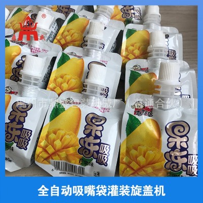 公司生产的全自动自立袋灌装机可用于袋装吸吸果冻,豆奶制品,酒水,鲜奶,酸奶,纯净水,果汁,冰淇淋,食用油,调味品,豆瓣酱、番茄酱、洗涤化工液料等的充填旋盖。机器自动作业,PLC+触摸屏操作面板控制。变频调速。可连接CIP清洗系统,可配空气净化系统,可以根据客户需要增减部分功能, 可特殊定制。
