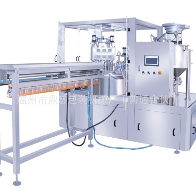 鼎盛牌全自动一出四宠物零食果泥吸嘴袋灌装旋盖机 自立袋灌装机