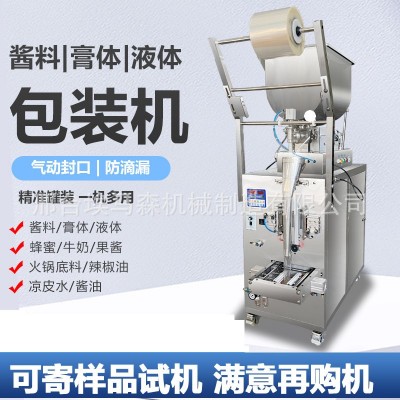 包装机三边封全自动膏体液体酱料辣椒油芝麻酱冰袋称重灌装封口机