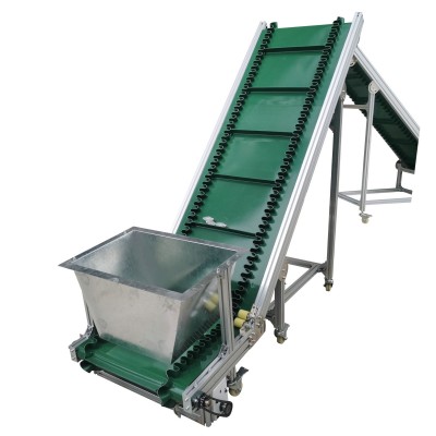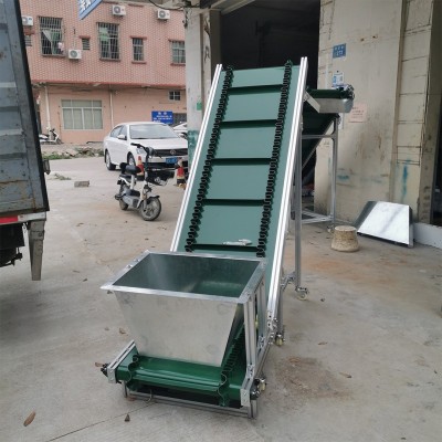 裙边挡板皮带爬坡输送机 食品流水线传送设备 斗式斜坡上料提升机